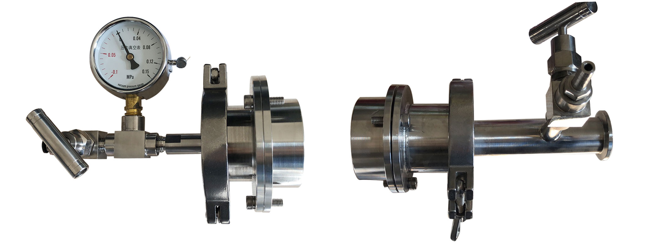 管式炉的密封主要是靠左右两侧法兰和密封圈。一般左侧法兰为进气端,包含进气口,针型阀,压力表和硅胶密封圈;右侧法兰为出气端,包含针型阀,KF法兰(用于连接真空挡板阀到真空泵),出气口及硅胶密封圈。