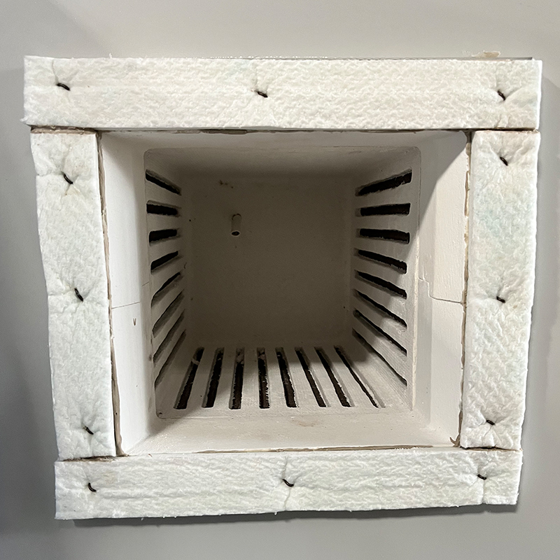 3、向北马弗炉采用一体成型陶瓷纤维炉膛,保温节能。炉门口加装进口纤维毯,密封更好,有效缓冲防止炉门撞伤。(炉膛内实际为硅钼棒加热元件,此图片仅作为展示门口密封效果)